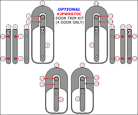 2007-2010 Jeep Wrangler 4 Doors Interior Optional Door Trim Kit, 30 Pcs