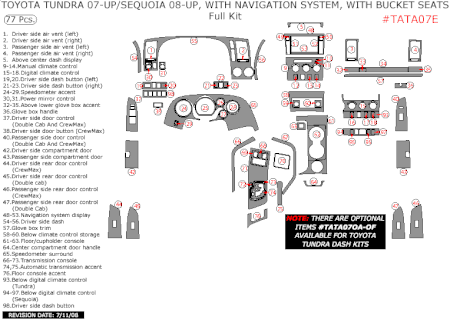2007-Up Toyota Tundra, 08-Up Sequoia, Full Dash Trim Kit, w/ Navigation, w/ Bucket Seats, 77 Pcs